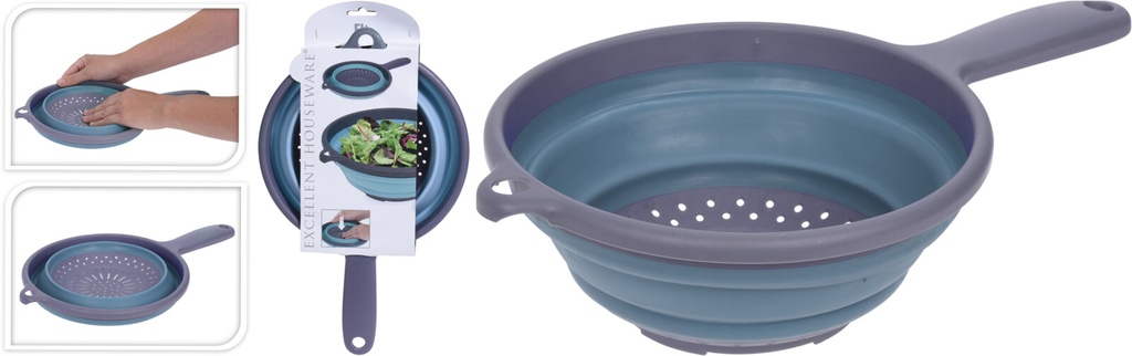 Colador de silicona y plástico resistente, pensado para poder almacenar ocupando muy poco espacio. Diámetro 23cm