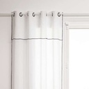 Preciosa cortina visillo en blanco, con un detalle ribeteado en negro que hará tu estancia más elegante. Medidas: largo 240 x ancho 140 cm